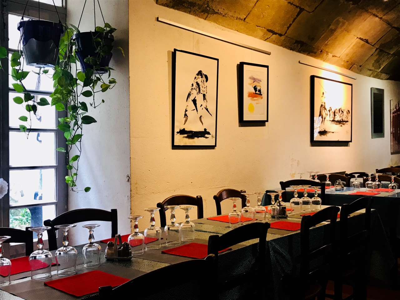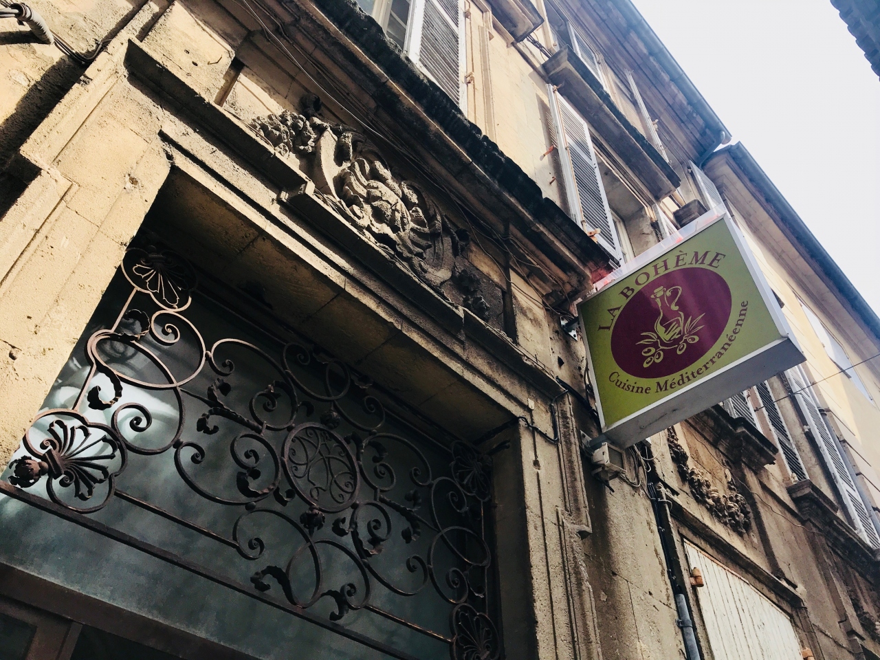 アルルの街の中心地であるレピュブリック広場内から歩いて近いところにあります。店には絵などをいっぱい飾って雰囲気がいいです。鶏肉の料理とパスタを食べました。鶏肉が美味しかったんです。またデザートも良かったんです。