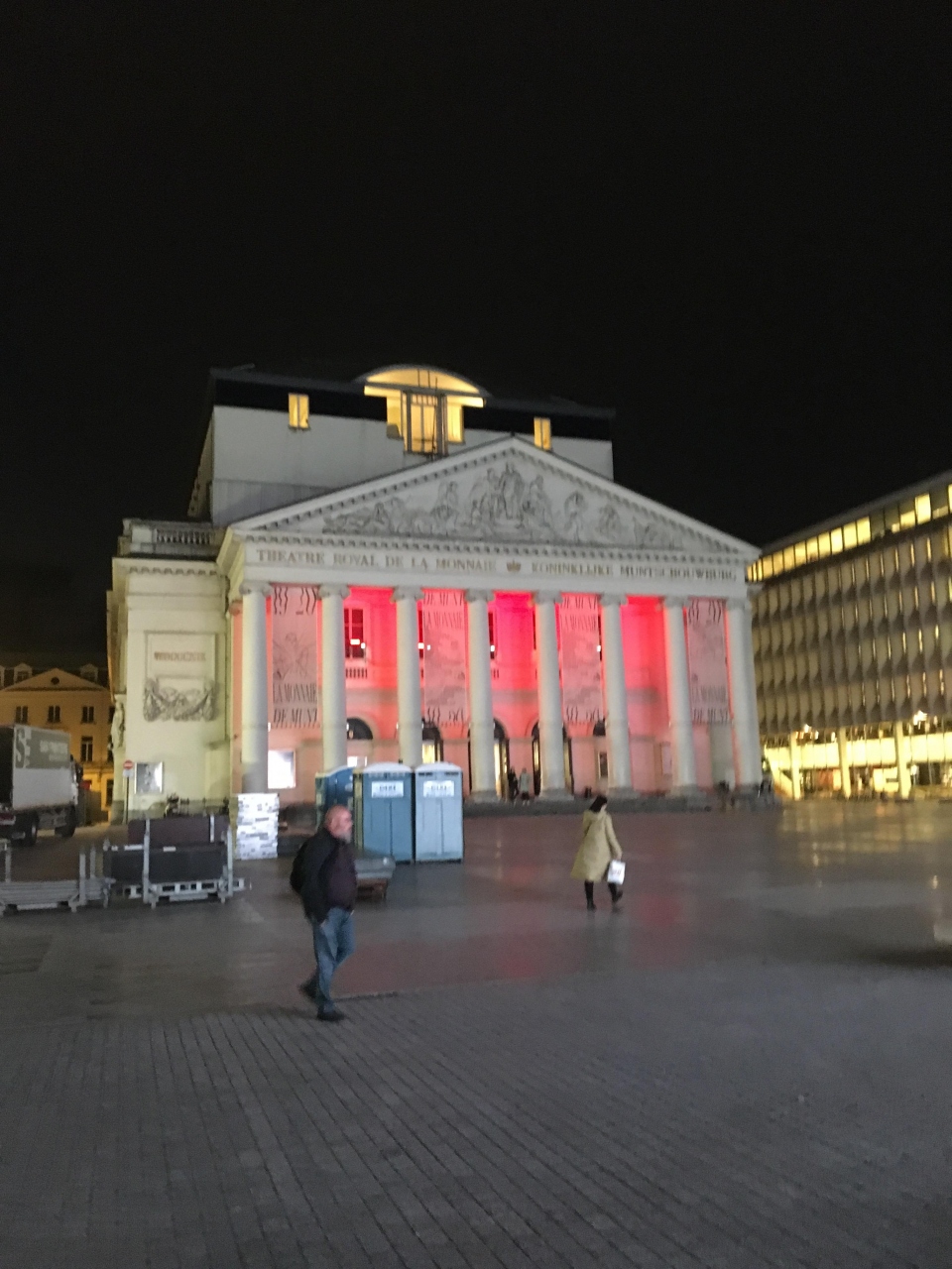 ブリュッセルの中心市街地、繁華街もどまんなかにある国立劇場です。太い柱が立ち並びギリシャの神殿のように見えて、一見すると古い歴史的な建物かなと思っいたが背後には真新しいビルディングがあるので割と新しい建物なのだと思いました。