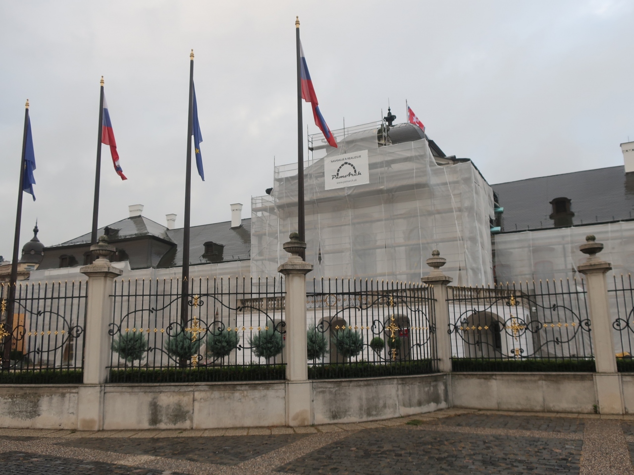 以前はグラサルコビッチ伯爵宮殿でした。現在は大統領の官邸として利用されているので一般人が館内はもちろん敷地内に立ち入ることも出来ません。頑丈なフェンスの外側から様子を窺い知るのみです。宮殿にしてはこぶりな規模なのが意外でした。