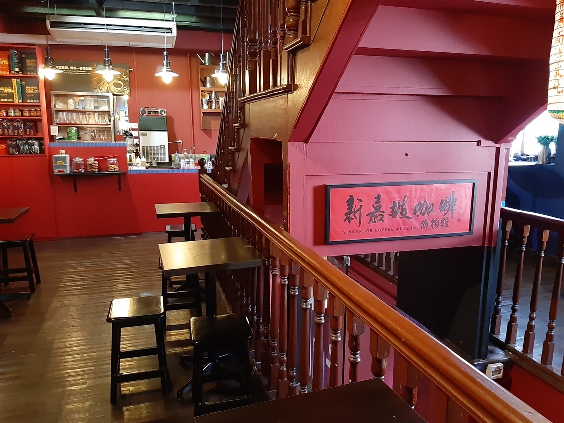 南洋老珈琲は、チャイナタウンのサウス・ブリッジ・ロードとスミス・ストリートの角にあるレトロなカフェ。