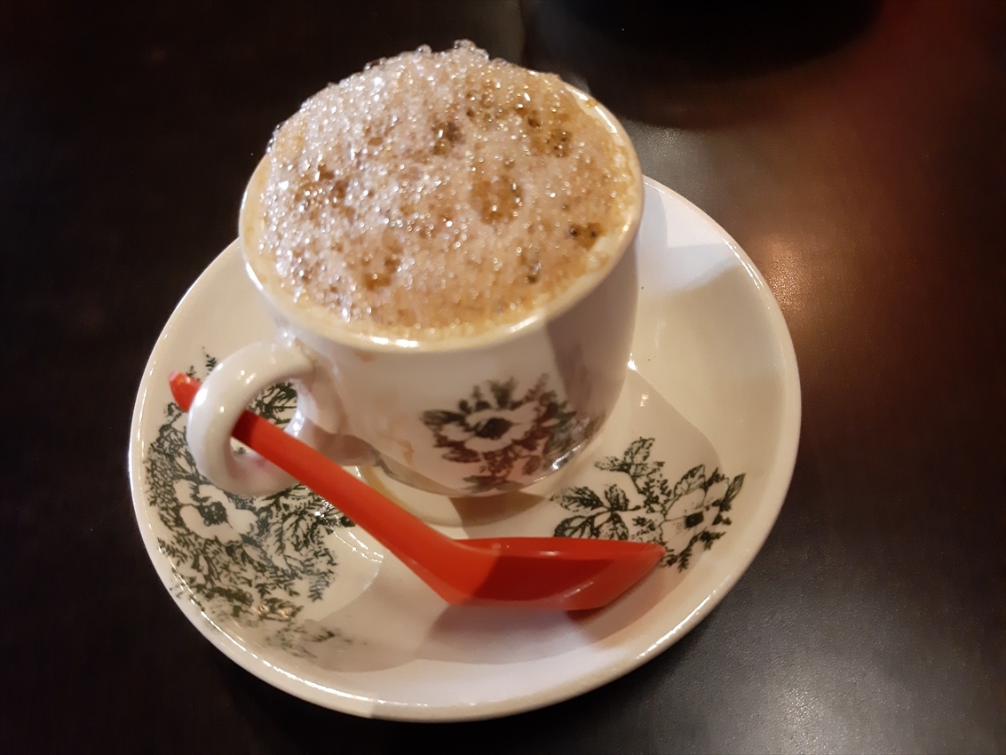 ここのコーヒーは見かけは黒々としていますが甘い香りの特殊な製法。