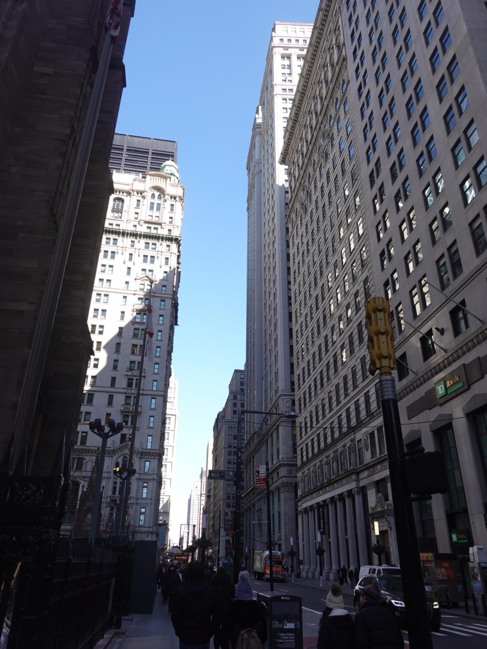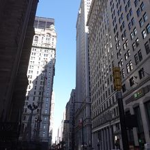 トリニティ―教会から通路を抜けて、ウォール街に行きました。ニュースで良く見るあの大きな星条旗のかかった建物が目の前に。多くの観光客が建物をバックに写真を撮っていました。夕方であったこともあり、金融街といううよりは、観光地という感じになっていました。