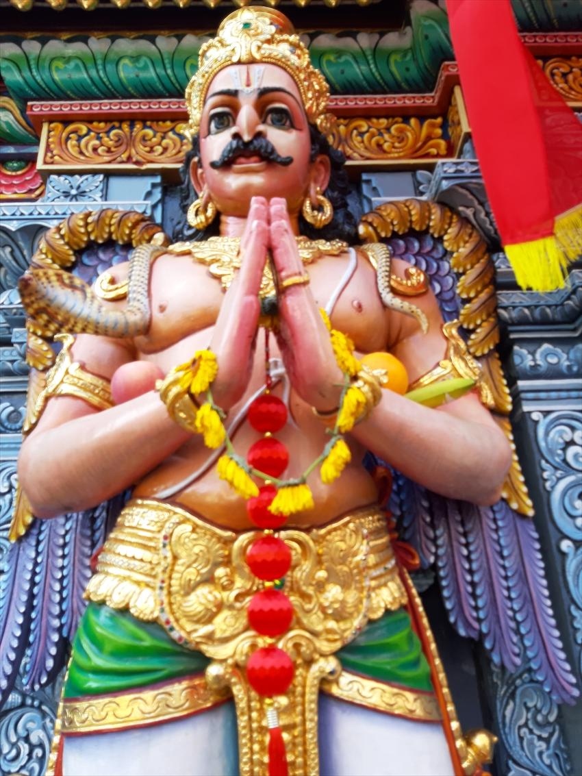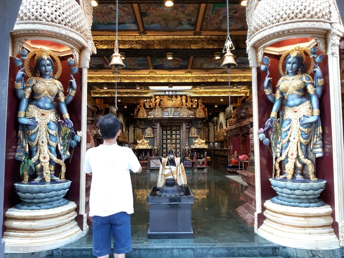 スリ・クリシュナン寺院は鮮やかな色合いと、門の左右に立つ像がアニメのキャラっぽい顔立ちなので新しい寺院かと思ってしまいますが、その前身となった建物は1870年創建とのこと。
