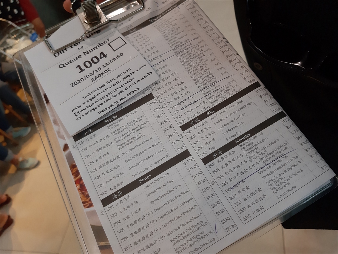 後は、電光掲示板に表示される順番を待ちながら、注文表に食べたい物の数量を書き込んでいきましょう。