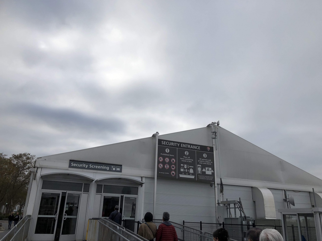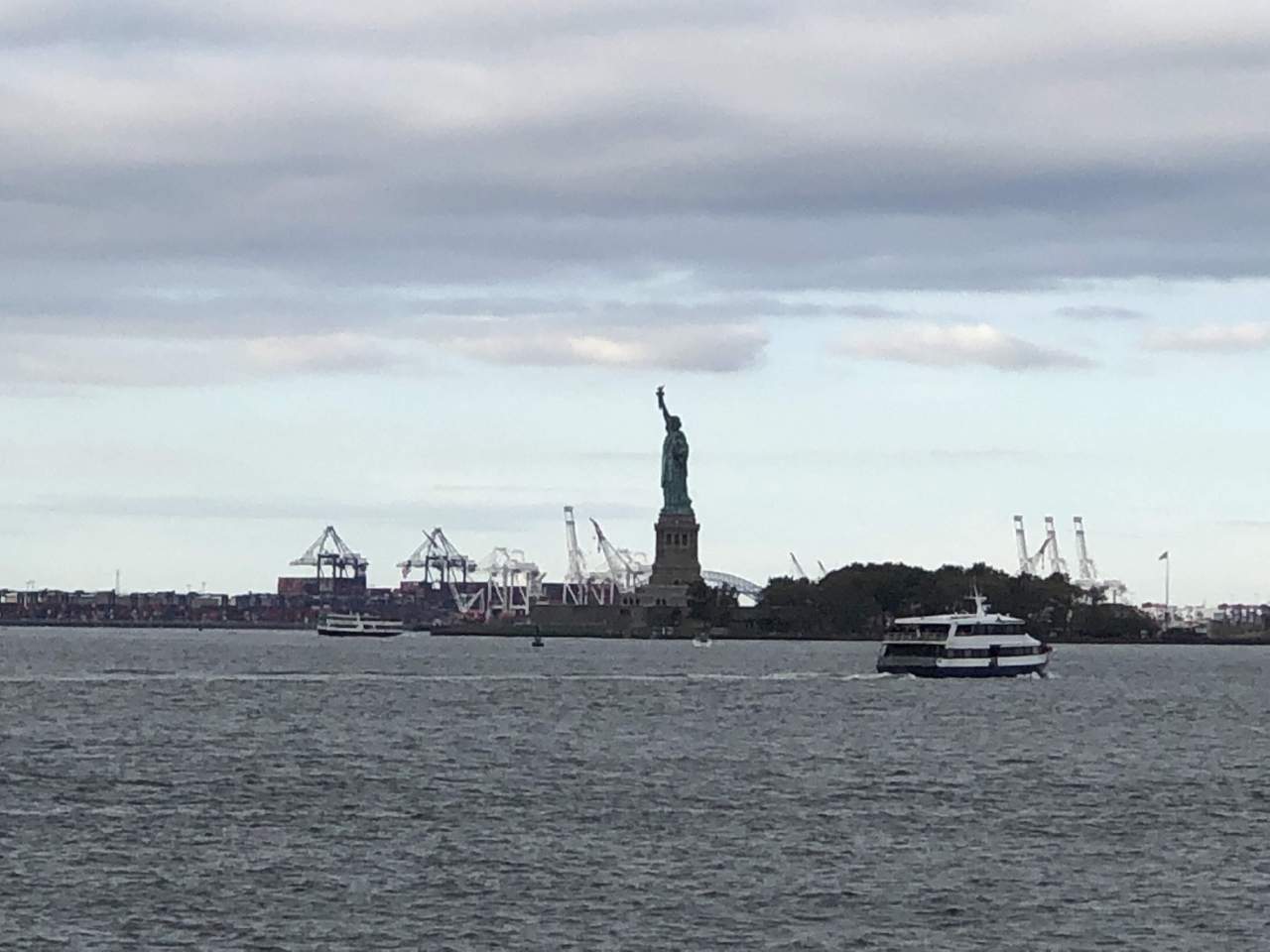 自由の女神像のあるリバティー島へ向かう為のクルーズ船です。バッテリーパークにある船着き場から出ています。乗船のために,結構な行列に並びますが,キャパのあるボートですので,ことのほかすぐに乗ることができました。セキュリティーチェックも割にアバウトでした。外デッキ右舷の船首に陣取ると,女神像側面,正面,背面と良く観えて迫って近づく様子がカメラで捉えることができます。