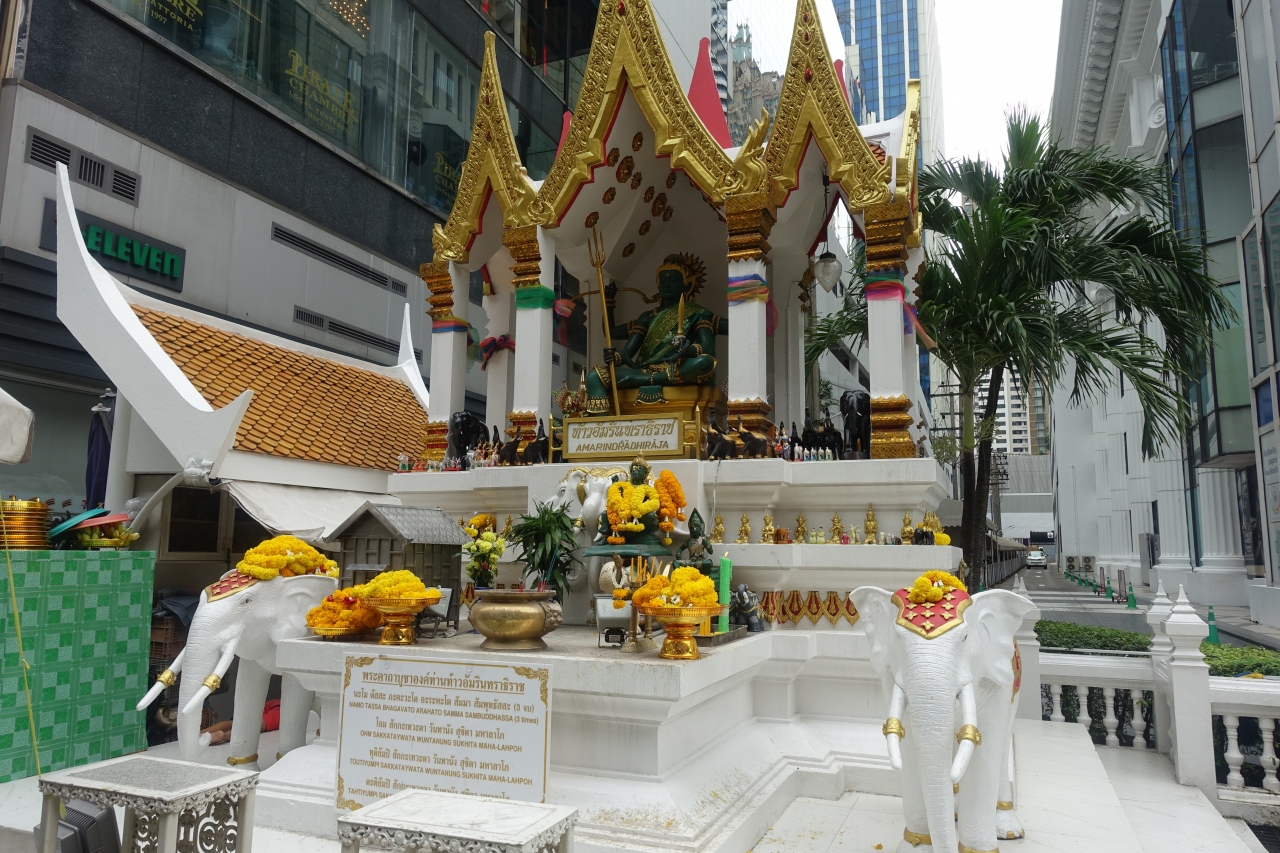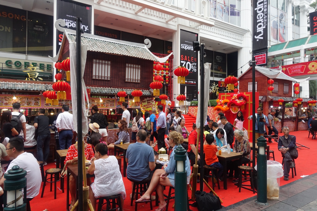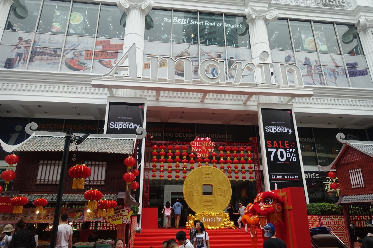 2月初旬に訪問しましたが、店の入口周辺では提灯や獅子舞など2週間後の春節に向けて早くも飾り付けがされていました。仮設の屋台みたいなのが設置されていて、観光客を中心に賑わっていました。ただ、店内は人は少なめという印象です。店舗の前にインドラ神を祀ったターウアマリンがあります。