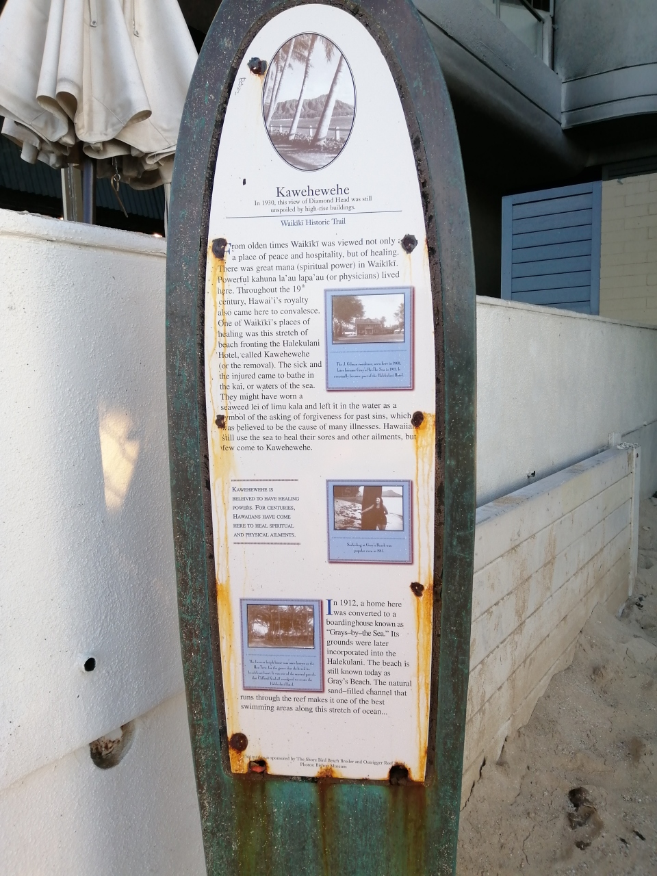 今後のご利益がある様にハワイ滞在最終日に、気になっていたワイキキビーチのパワースポットを旅立つ最後の記念に撮っておこうと行動。調べて見ると実はワイキキのパワースポットが凄い身近にあるのです。ハレクラニ―のホテル脇路からビーチに向かって歩くとあるのが「カヴェヘヴェヘ」。ここは古来から病んだハワイアンが水浴びに集まった場所で、病気や痛みを癒す力があると信じられているパワースポットです。