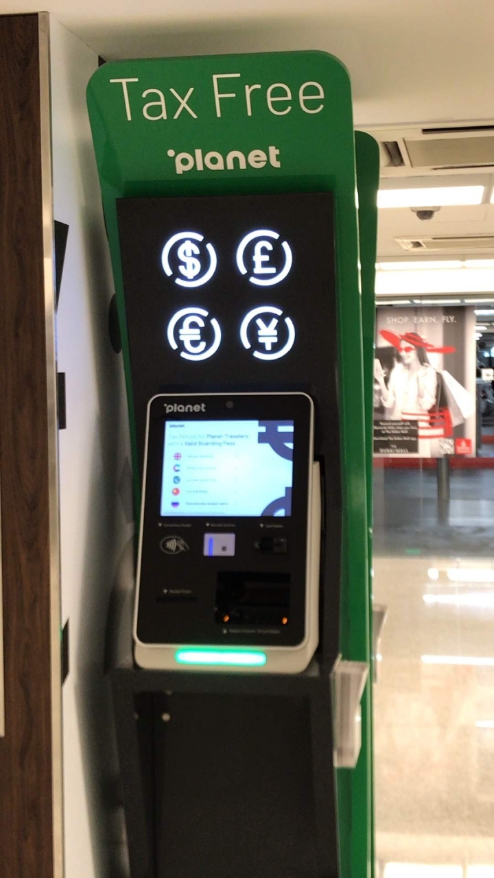 "Tax Free"の緑色の機械はドバイ国際空港にもあります。