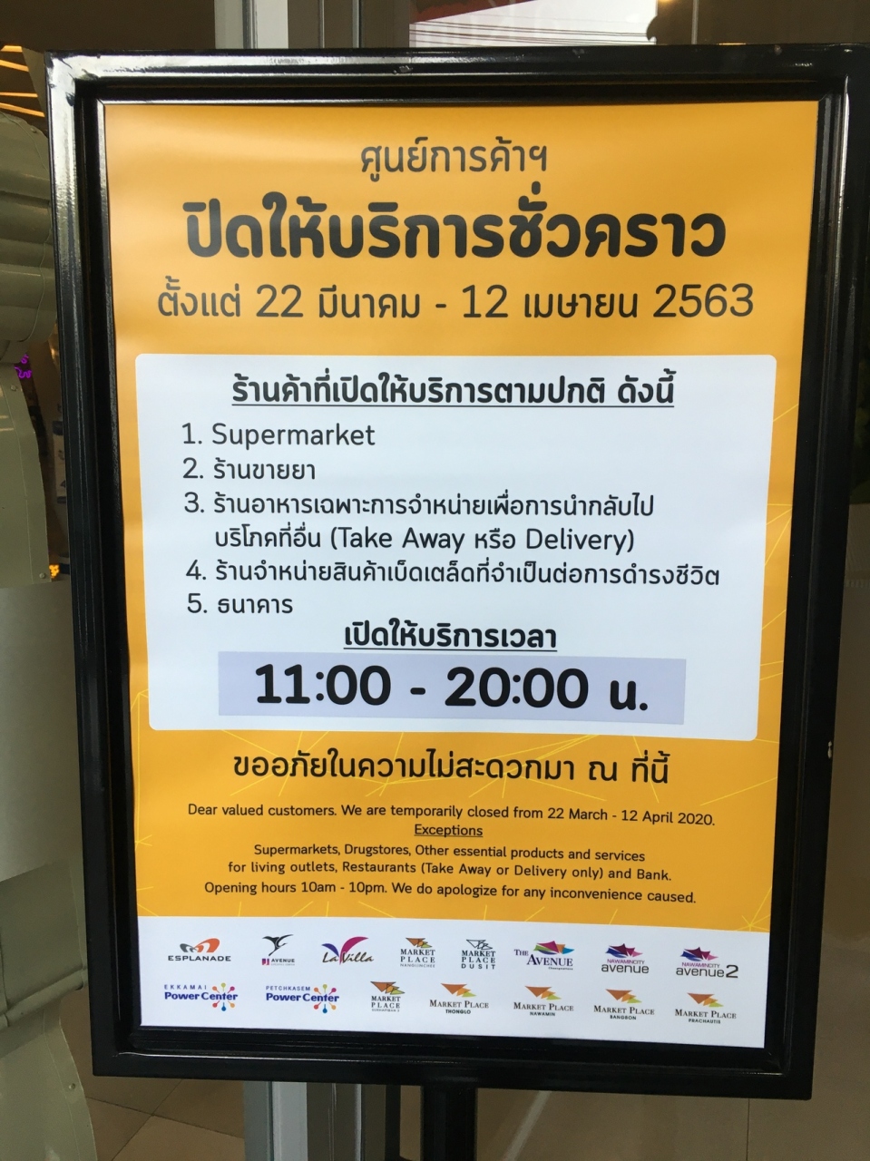 2020年3月22日からCOVIDー19(武漢肺炎)非常事態宣言により一部営業が変更となっている。