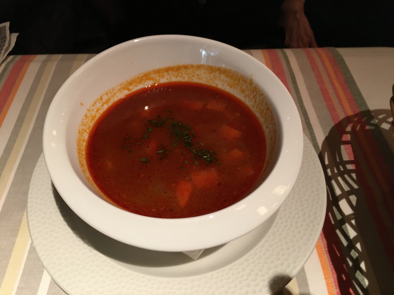 料理も、広く愛されそうな味です。今回の旅行で、一番美味しかったグヤーシュはここのお店のものでした。野菜に旨味が染み込んでいて、ほっとする味。塩やスパイスがほどほどなので、どなたにも食べやすいだろうと思います。夫の頼んだフォアグラのグリルも、臭みがなくて美味でした。