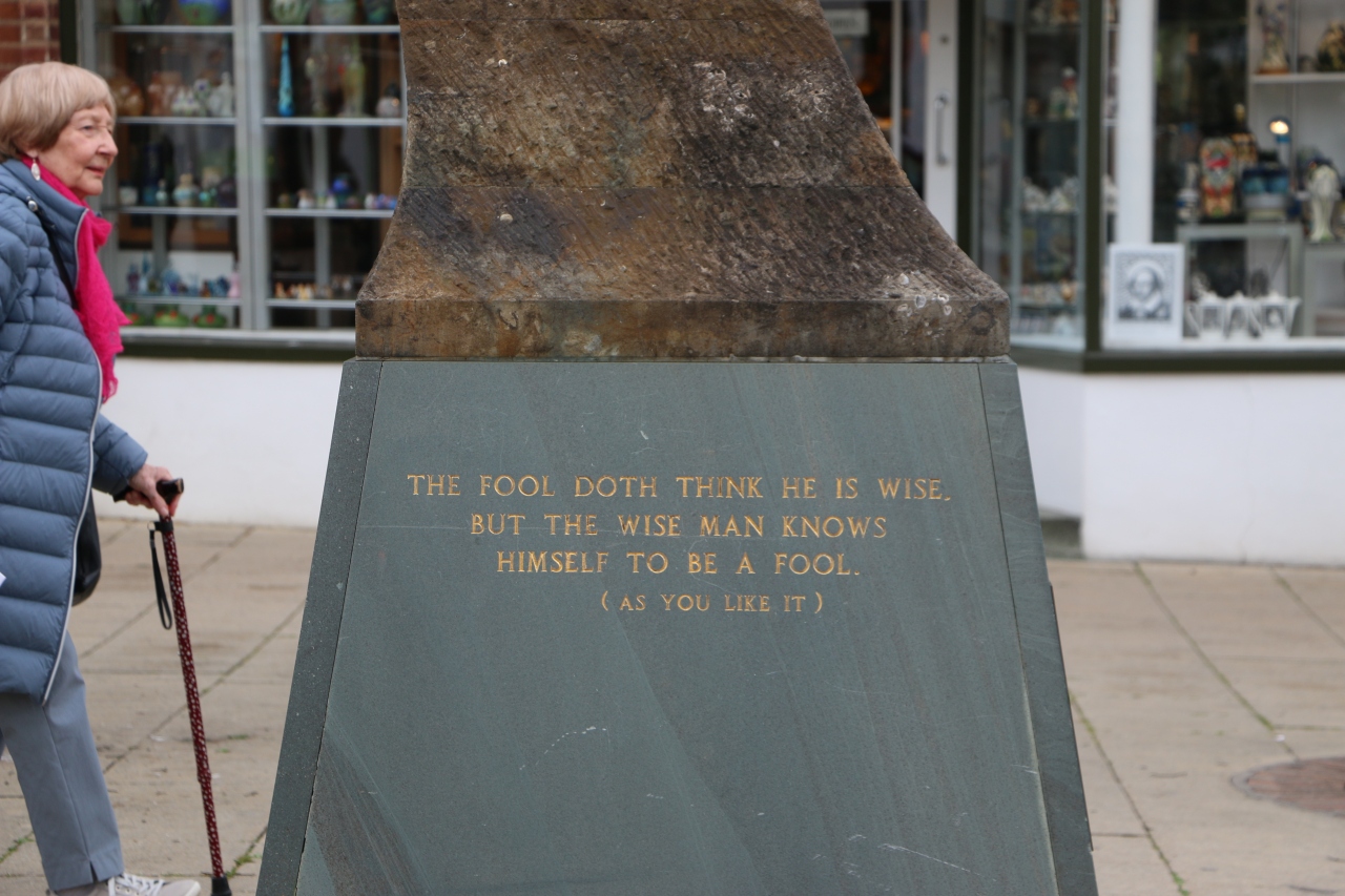 銅像の台座部分には「お気に召すまま」や「ハムレット」の台詞が刻まれ、いかにもシェイクスピアの故郷らしい演出だと感じました。