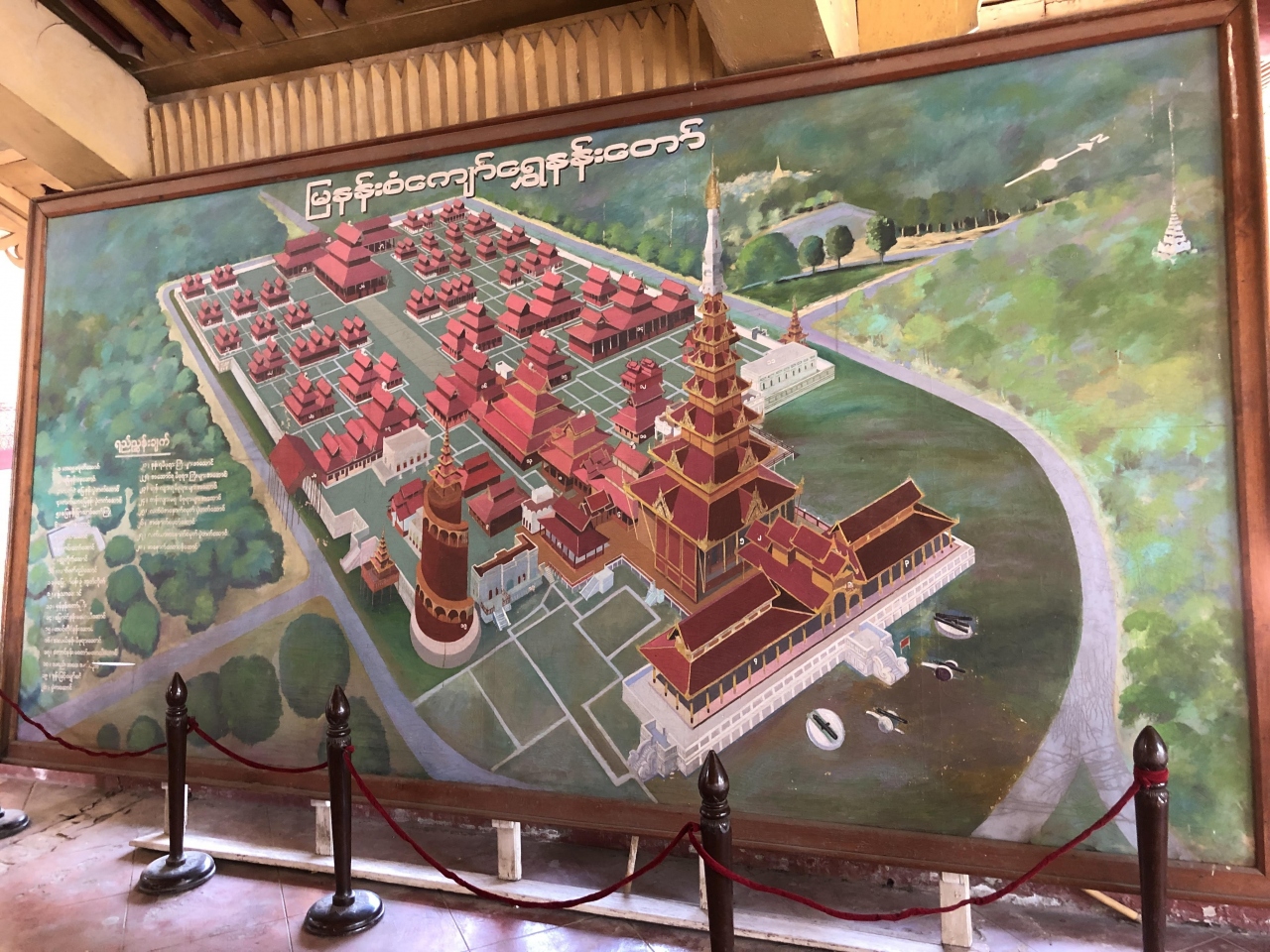 ミャンマー中央,マンダレーは,ミャンマー第二の都市。19世紀後半に英国に占領される前まで,都であった所です。この旧王宮といわれる建物は,第二次世界大戦で焼けてしまったため,後に復元再建されたものですので,どこか人工的な装飾が感じられます。