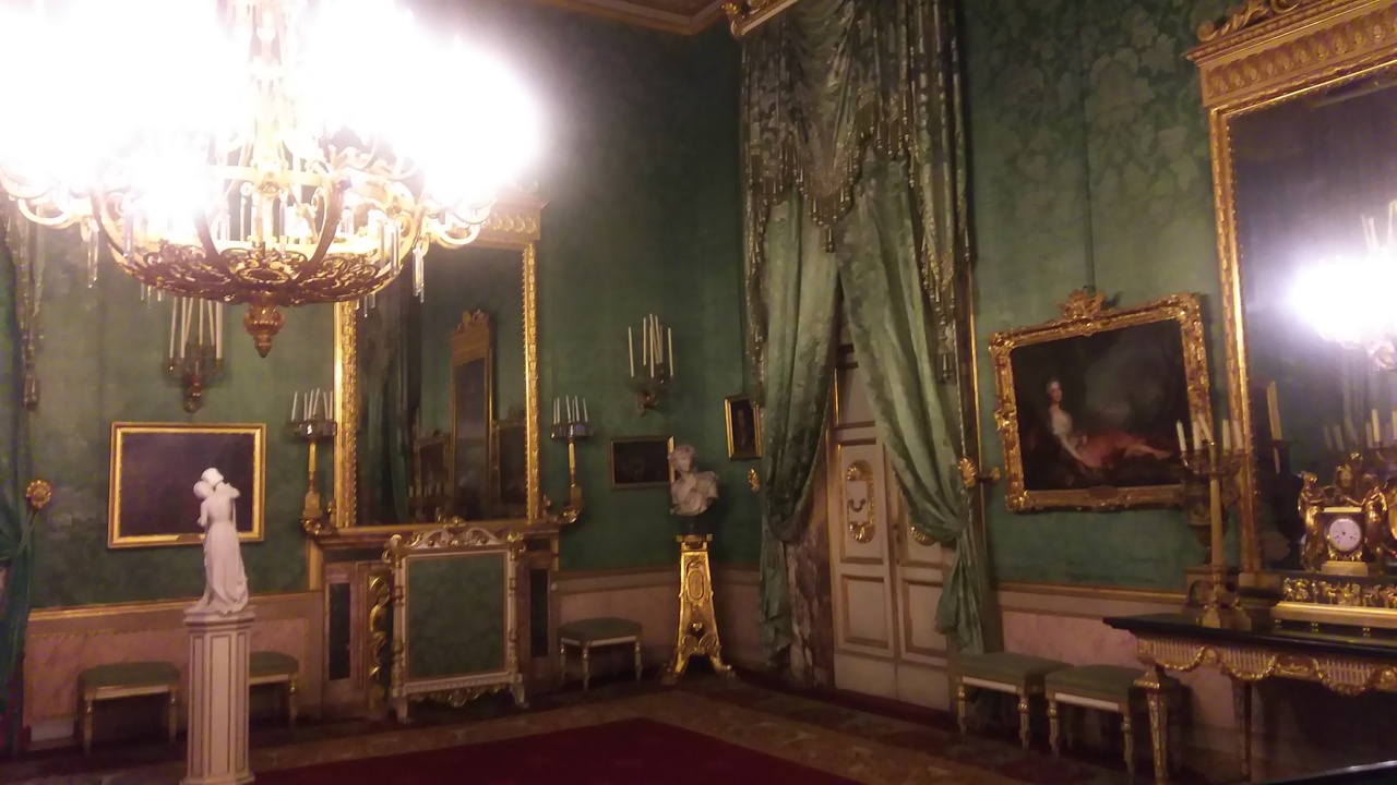 パラティーナ美術館に入場し順路どおり進んでいくと絵画が埋め尽くされた部屋とはちょっと違い、家具やベッド、椅子などがおいてある部屋があります。豪華絢爛で細部まできらびやかです。各部屋赤い部屋、緑の部屋など色の統一感もありコーディネートされていました。