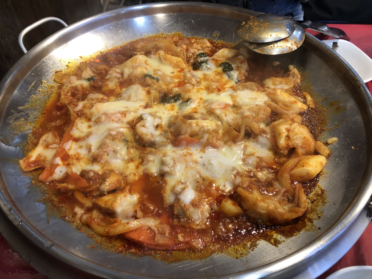 東大門でチーズダッカルビが食べたくて見つけた店。ガイドマップやGoogle検索でもトップに出てくる有名店?のようで、場所は韓国語が読めないと少しわかりにくいが店内はすごく混雑していて人気があることがわかった。実際に日本の観光客らしき人もいたし、期待通りチーズダッカルビはとても美味しかった。ただ混雑が原因か注文が出てくるまですごく時間がかかったのでそれだけ不満だった。