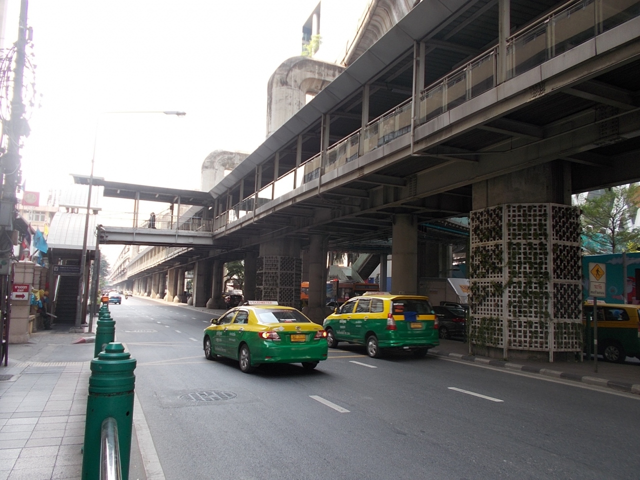 このラーマ1世通りは町の中心であるサイアムスクエア地区を東西に通る大通りです。東リはBTSの高速鉄道の2路線が通っています。高架鉄道は高架の歩道にもなっています。通りには大きなショッピングセンターが両側に並んでいます。多くの人々で混雑している通りです。