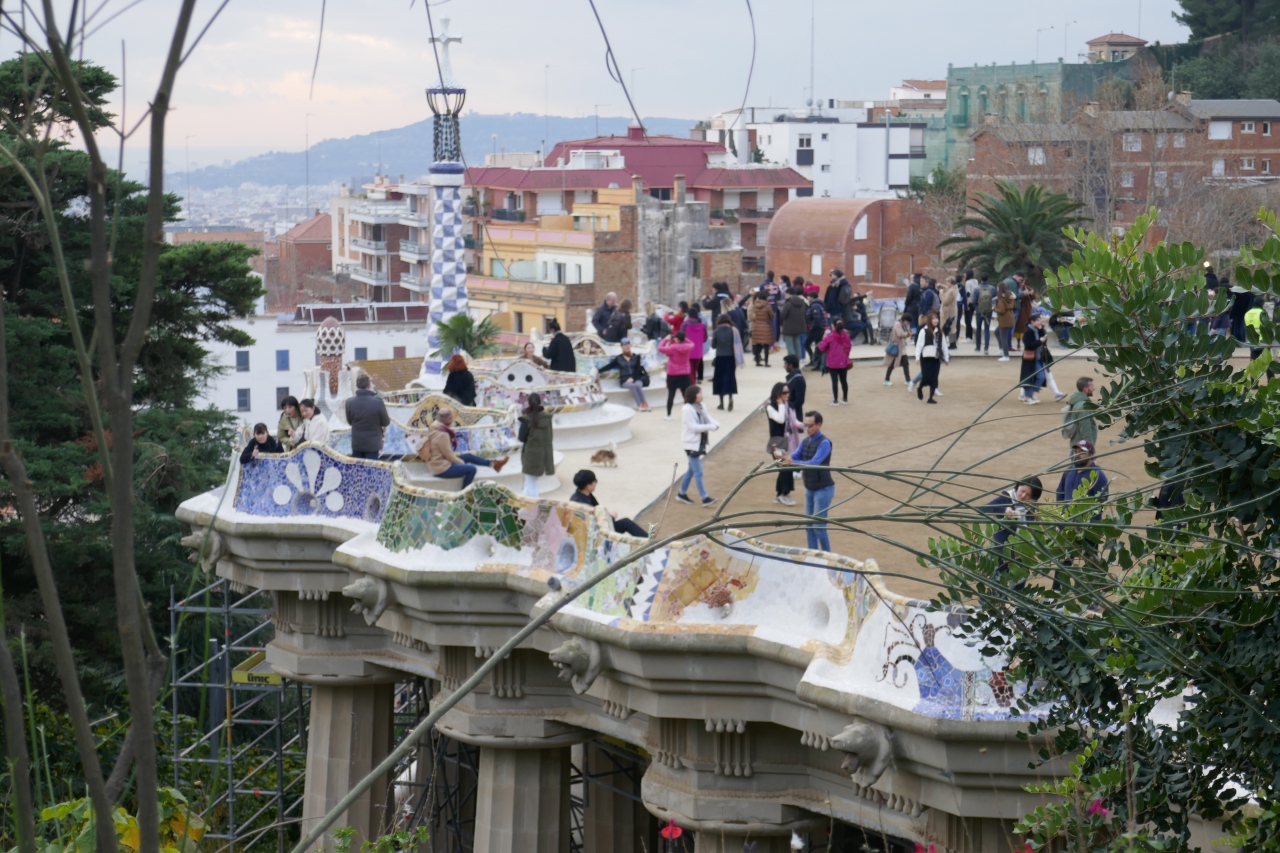 テラスと人気の「トカゲの噴水」は、人が多いので朝早目の観光がお勧めです。