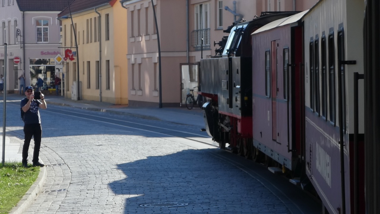 おすすめのコースは、まずはDBの駅からバード・ドベラーンの街中まで線路沿いに歩き、追いかけてくる下り列車を街中で撮影。早足ならなんとかDBの列車を降りてから街まで先行できるでしょう。そしてしばらく街中を散策し、30分後にやってくる上り列車をバード・ドベラーン・シュタット・ミッテ駅の先の街中で撮影。基本上り列車が蒸気機関車が前向きの姿なのでこれが撮影のメインになります。そしてバード・ドベラーンまで歩きで戻って今度は乗車。時間のある方は終点まで往復、時間のない方は終点まで行かずに途中のハイリゲンダムで折り返します。ここで列車の行き違いですが、下り列車が先に入って上り列車を5分間くらい待つので折り返しも楽々。バード・ドベラーン駅ではDBの列車がくるまでに機まわしが行われますのでこれもじっくり鑑賞できます。
