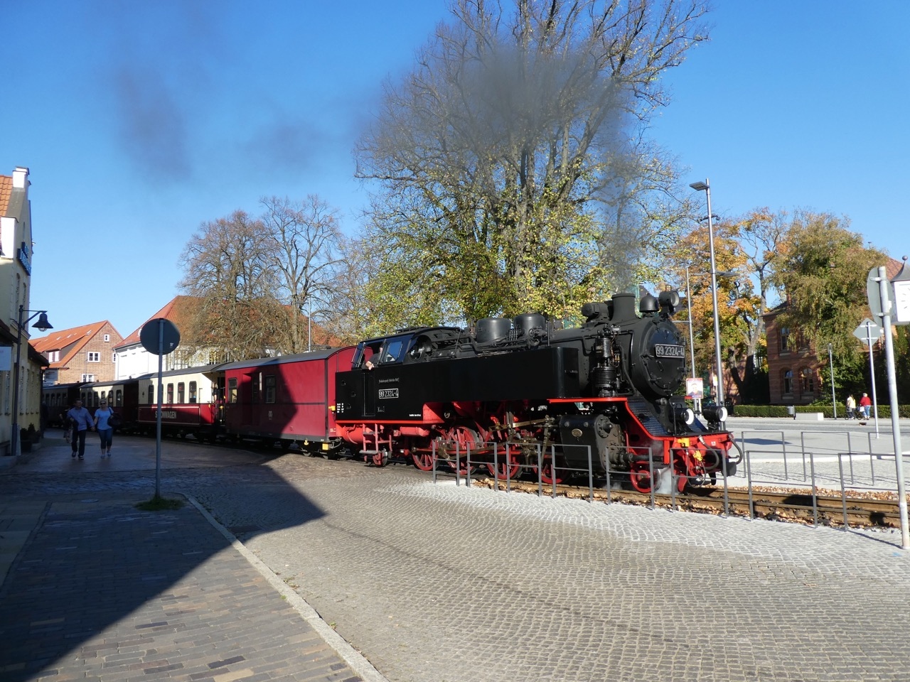 ベルリンからもハンブルグからも3時間くらいかかるバード・ドベラーンという小駅から街中を路面走行ののち、草原と林の中を快走してキュールングスボルン西まで走る蒸気列車。見て楽しく乗って楽しい列車ですが観光専用列車ではなく公共輸送機関でもあります。