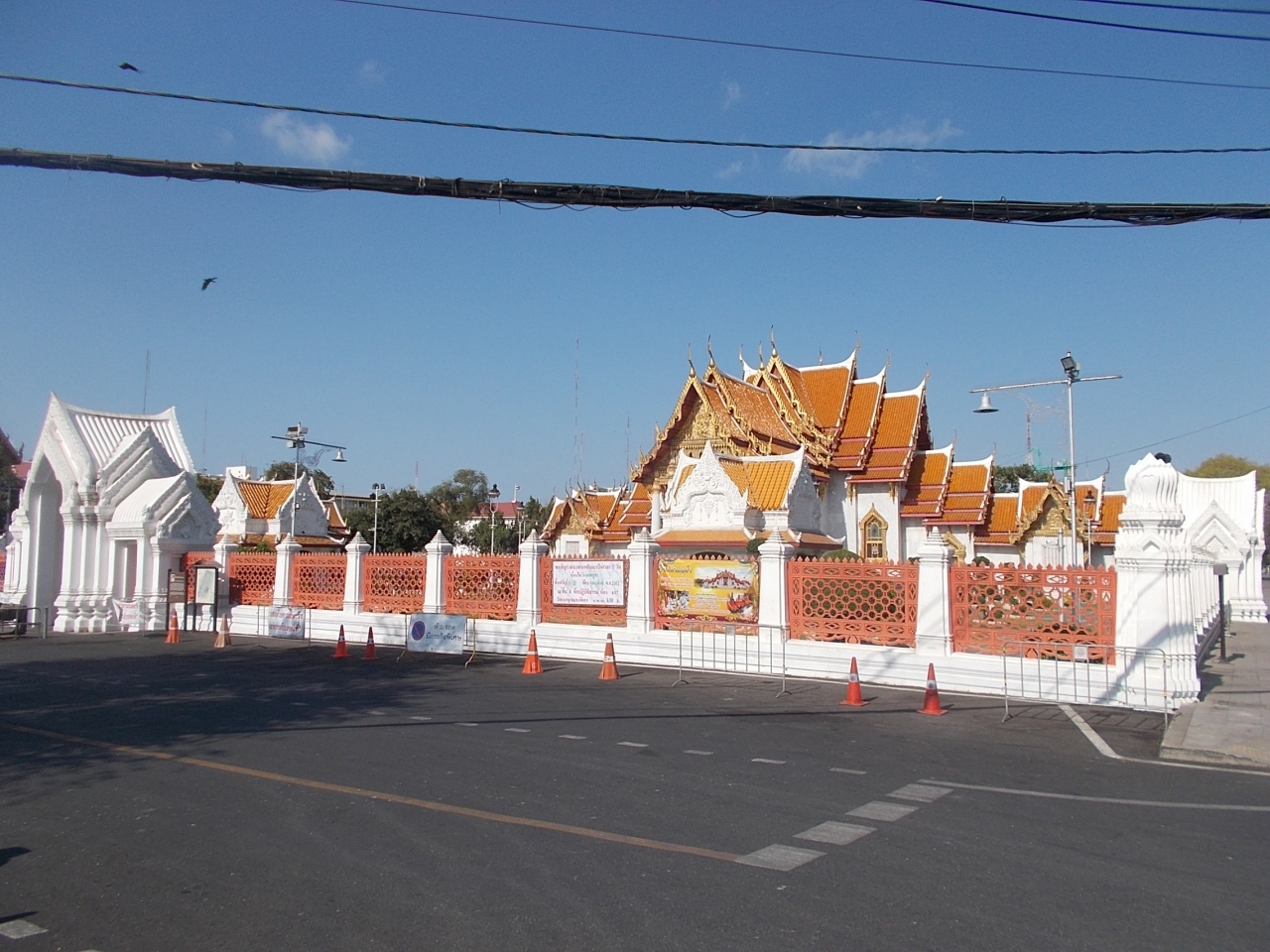 このワット・ベーンチャマボピットは大理石寺院と言われています。旧市街地の北側にあるドゥシット地区にあります。このワットの本堂は大理石でつくられたいます。ただ屋根の部分のみ違います。大理石はイタリア製のものです。スタンドグラスも使われています。ヨーロッパの様式も取り入れています。