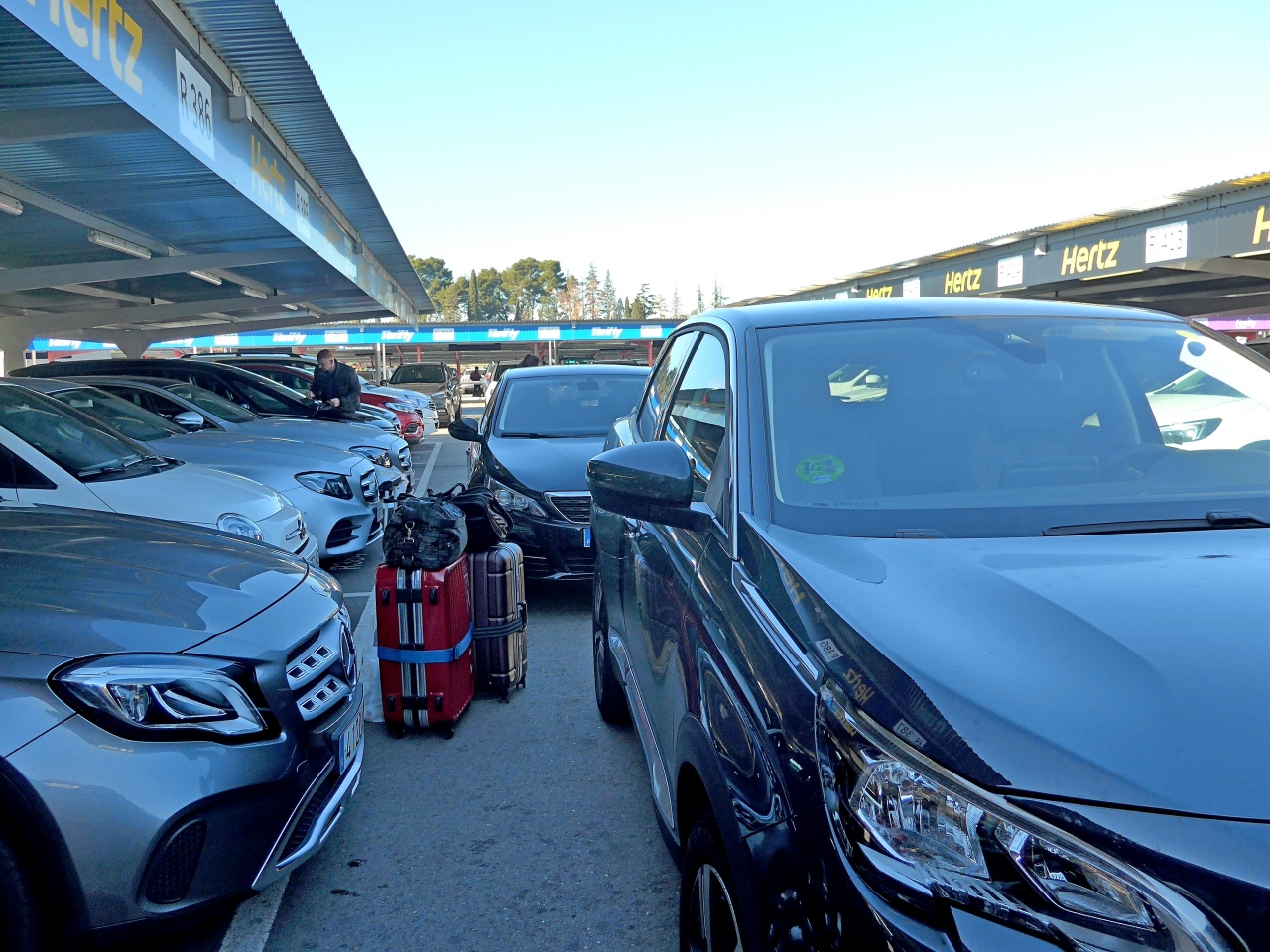 レンタカースポットは第4ターミナル(イベリア航空)と第1ターミナル(スターアライアンスなどの第2ターミナルの隣)と二つある.昨年は第4ターミナルで借りて,今年は第1ターミナルで借りたが,第4のほうが広くていい.今回第一ターミナルの返却は狭くて,もう少しでぶつけそうになったりひやひやした.左ハンドルになれていない人はぢ4ターミナルで借りたほうがいい