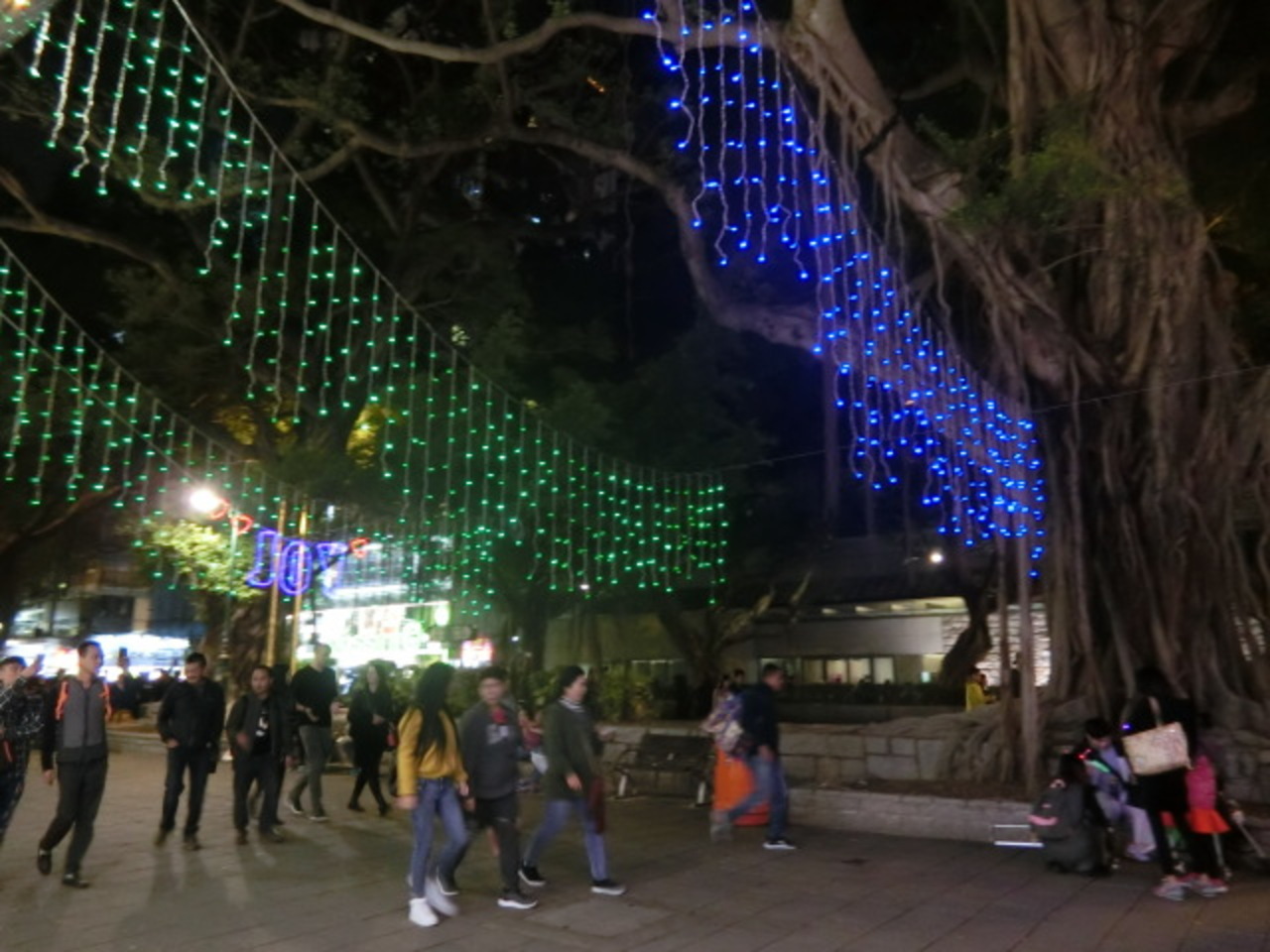 ネイザンロード沿いのショッピングストリートで、ファッション関係のお店が多く建ち並んでいました。ショッピングが好きな人は、歩いていて楽しい場所かもしれません。夜は歩道の上がライトアップされていて、とてもきれいでした。