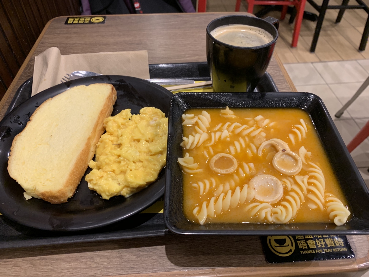 朝食を食べました。いつもはたくさん並んでいてなかなか入ることができませんが、今日はなんとか入りました。永年毎朝ここを通るのですが、思えばこれで2回目です。前回は台風で仕事が休みのときでした。味はそこそこです。