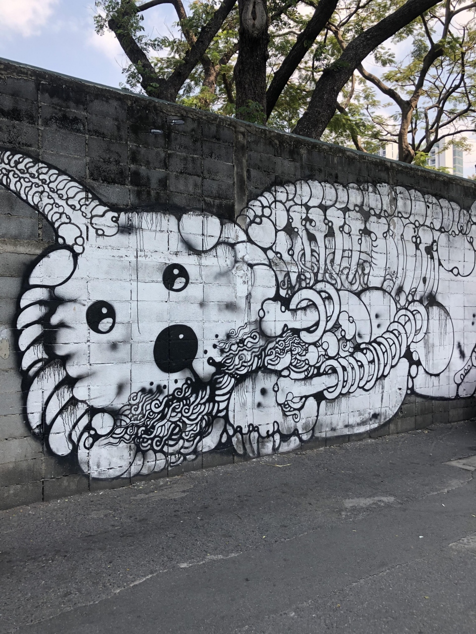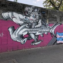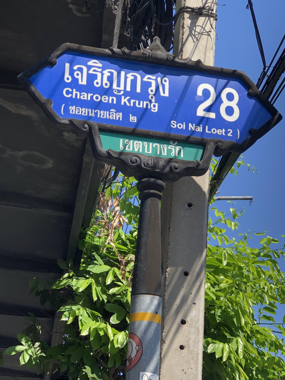 BTSのサパーンタクシーンからチャイナタウン方面へチャルンクルン通りを北上します。シーロム通りを超えて、しばらく歩きソイ28を左折します。ソイ沿いにストリートアートを見ることが出来ます。ペナン島ストリートアート程たくさんありませんが、結構見応えがあります。