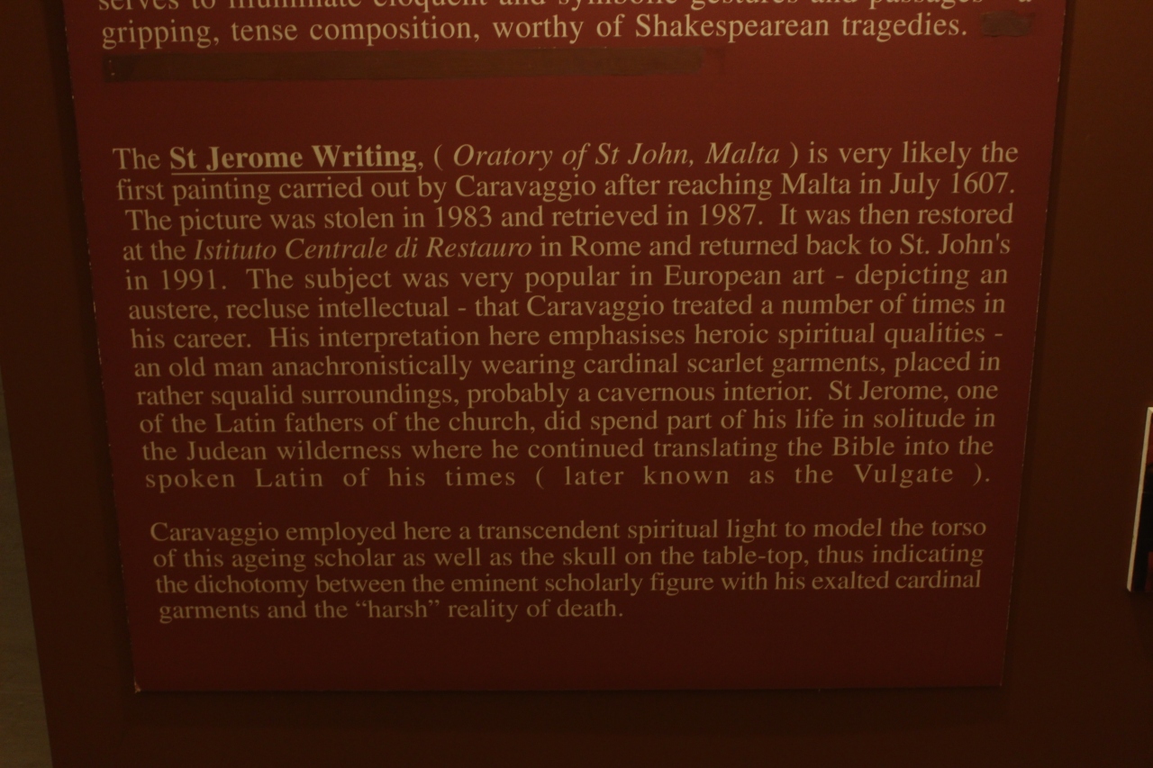 1部屋にはカラヴァジオの大作「聖ヨハネの斬首」が、もう1部屋には歴代の聖ヨハネ騎士団長の肖像画が展示されています。