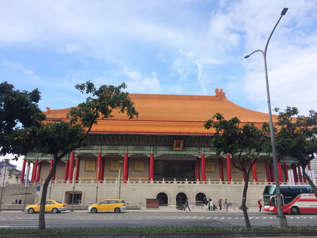 MRT中正記念堂駅あがって、すぐです。全く同じ形の屋根と大きさに見えます。全部赤いので、すごく目立ちました。周りで、学生たちがヒップホップのダンスの練習をしていました。1階にモスバーガーが1件ありました。