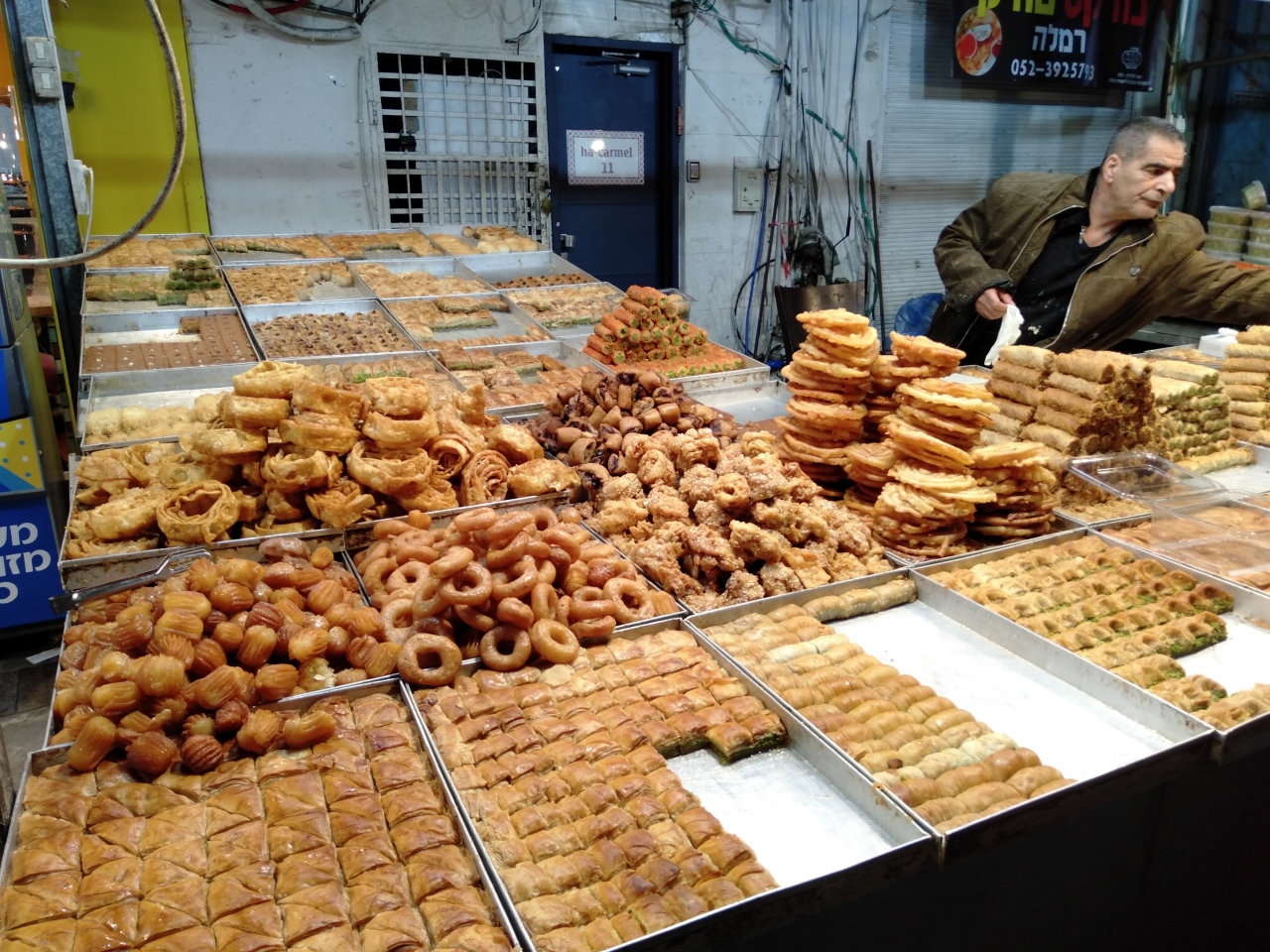 市内にある市場です。アラブのスイーツバクラバやフルーツ、各種ハンドメイドらしきアクセサリーなどを売る屋台が軒を連ねている活気溢れる場所。