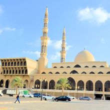 1984年から1987年にかけて建設されたシャルジャ首長国で最も大きなモスクだ。モスクの名前、ファイサル王とはサウジアラビアのファイサル王の名前を冠しており、サウジアラビアもこのモスクの建設に寄与した。1万人以上を収容できるほどだ。あまりの大きさに驚かされる。