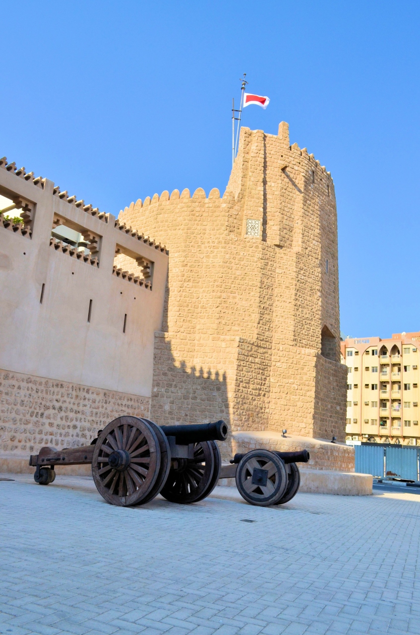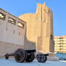 ローラスクエアのバス停で下車すると、海側を見ると大きな砦のようなものが見える。これがアル・ヒスン要塞。そしてアルヒスン要塞博物館でもある。この砦は1823年に建てられ、3つの塔により固められている。要塞には王宮や刑務所があったといわれる。建物の前には大砲が並んでいる。