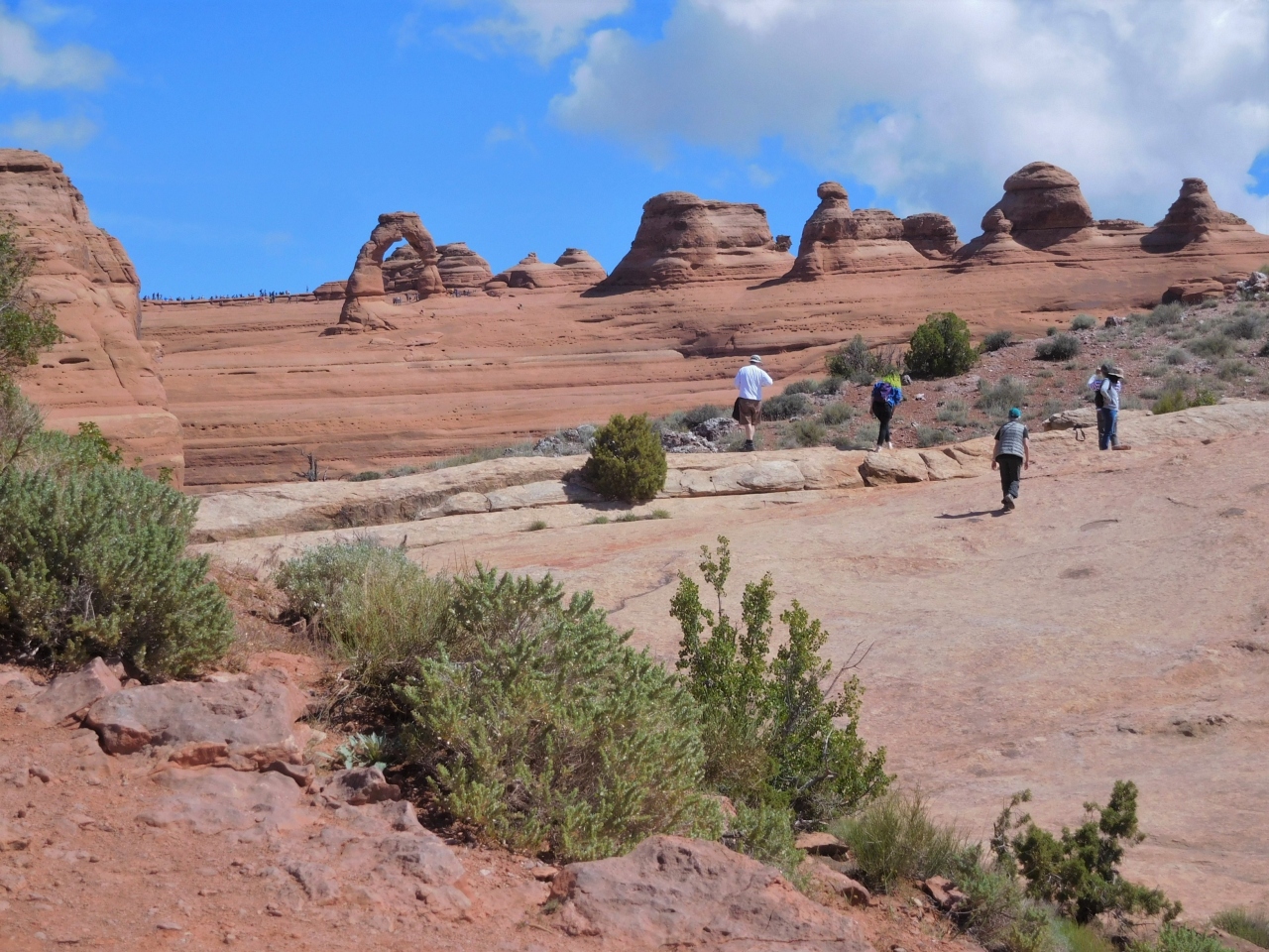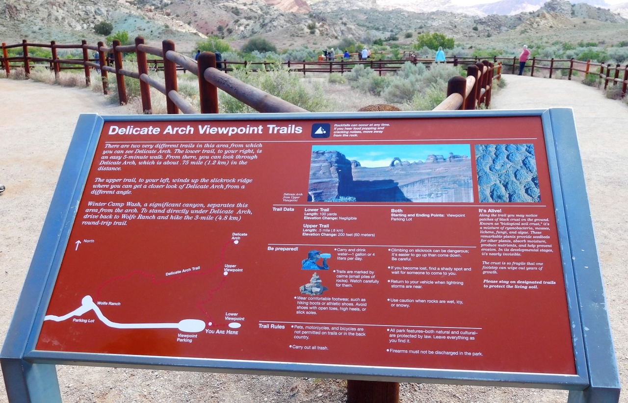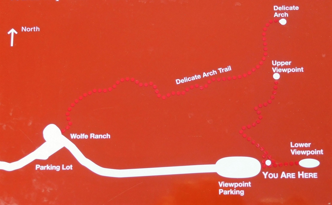 ウォルフェランチという駐車場から1時間のトレイルでデリケートアーチのそばまで行けます。