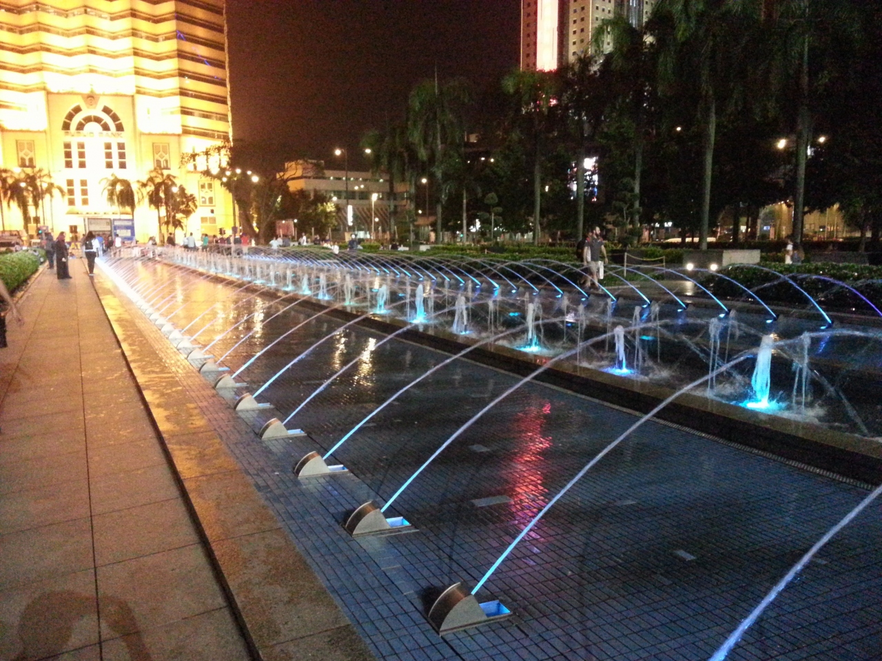 KLCC公園は、ペトロナスツインタワーのすぐ隣にある公園で、とても大きく、夜でも賑やかでした。やはり、夜のイルミネーションが綺麗で見惚れますね。間違いなく、インスタ映えしますね。