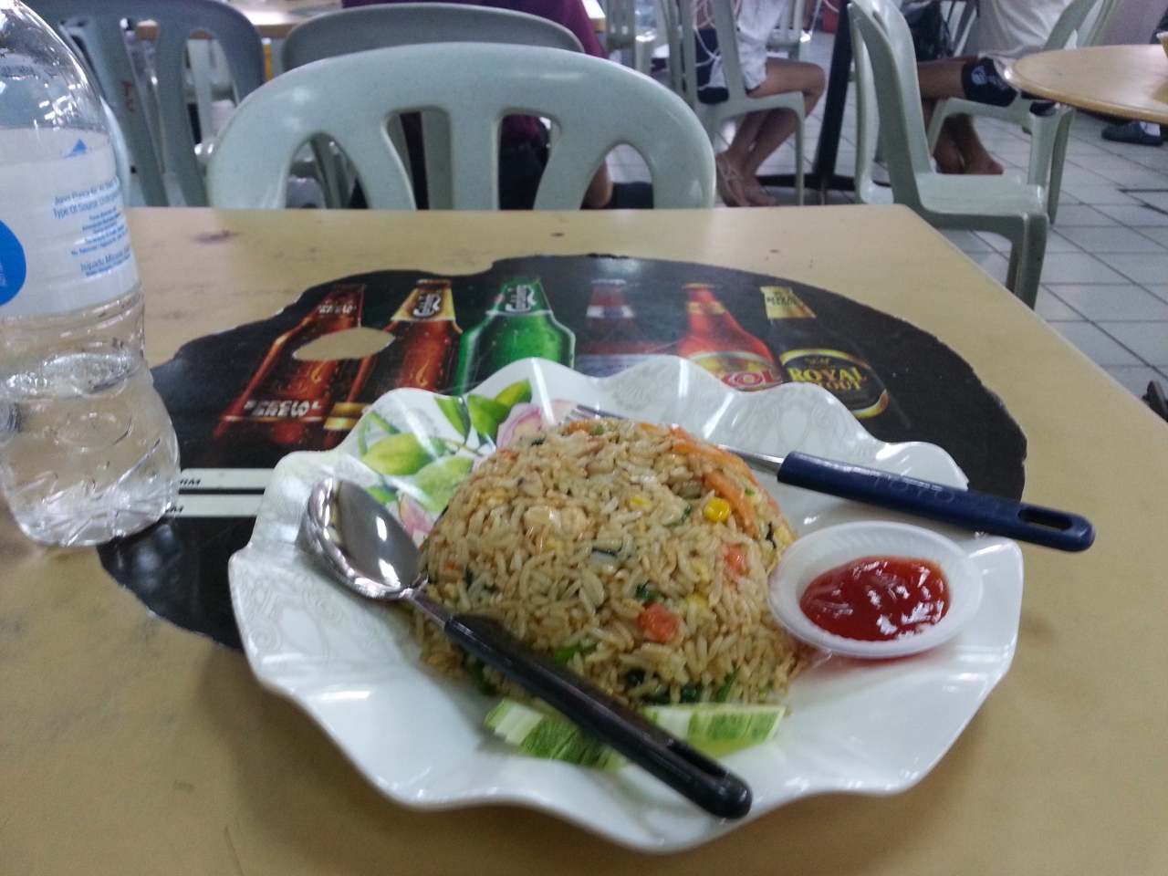 途中に、フードコートのようなエリアがあったので、昼食に寄りました。中華系のメニューが多く、定番の炒飯を頂きました。