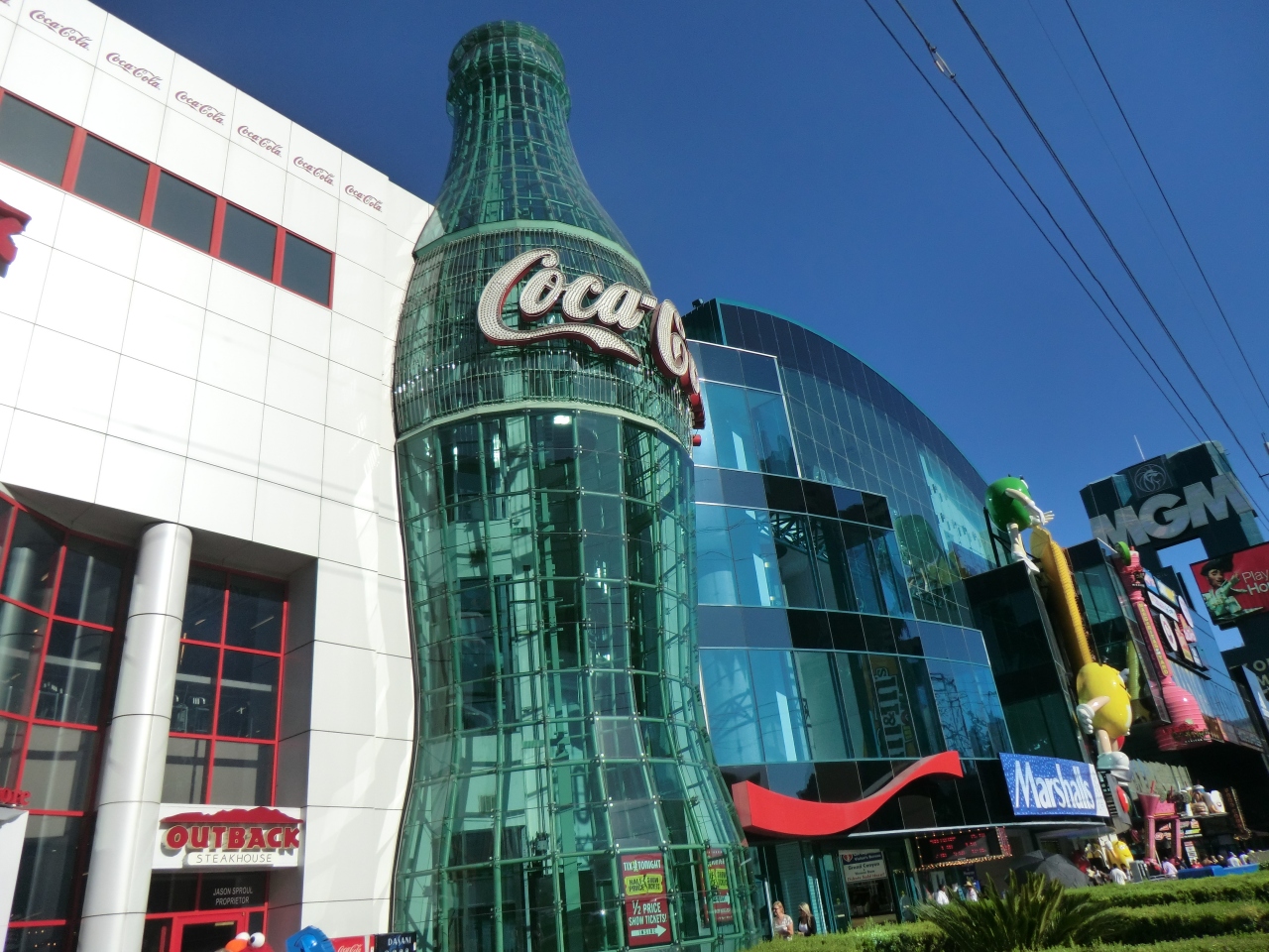 かつての「シティ・オブ・エンターテインメント」、テーマパーク的なラスベガスの面影を残している建物。大きなコーラのビンが目印です。