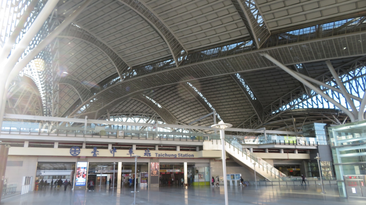 台中駅入り口は高い天井で、とても開放感があります。滑らかな曲線で構成された屋根はまるで駅ではない場所にいるような感覚になります。