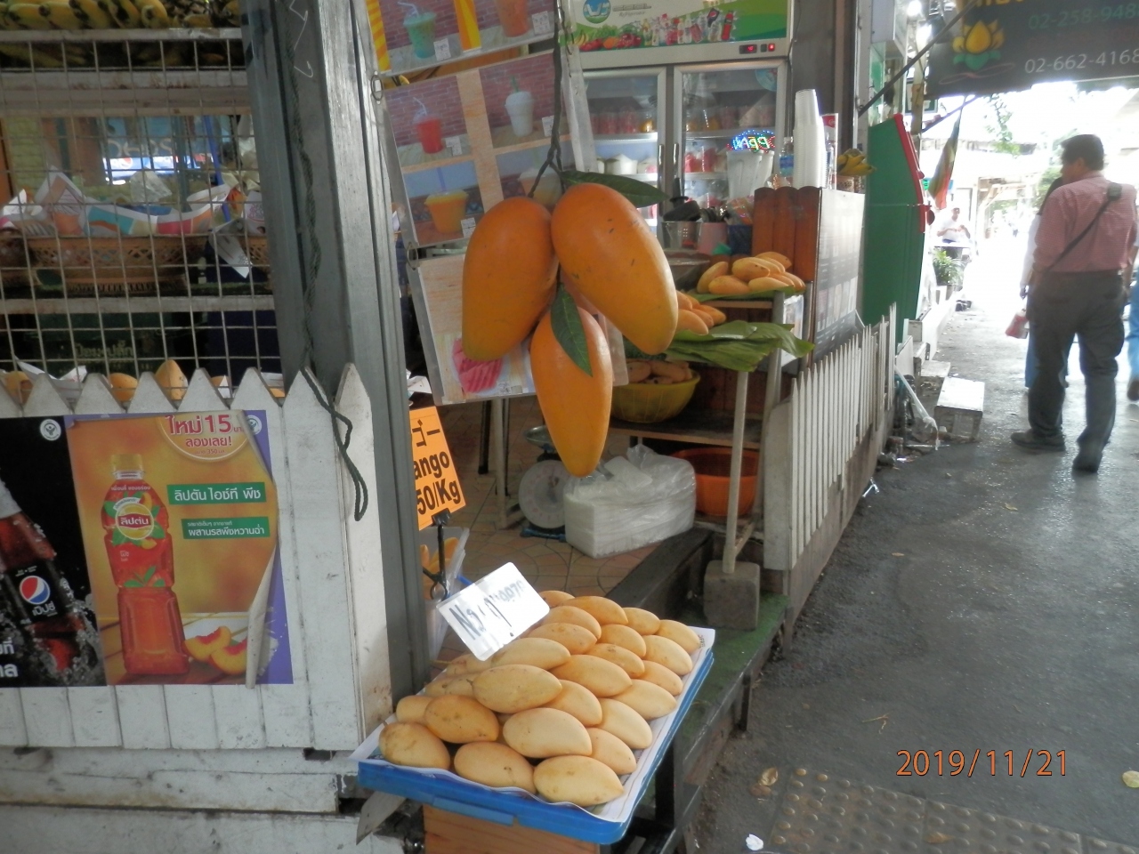 マンゴーがイムちゃんで安く美味しく食べられます。空腹ではないので、もち米無しでマンゴーだけ注文して食べました。大きなマンゴーが店先に山盛り置かれています。