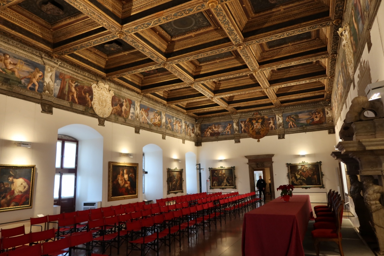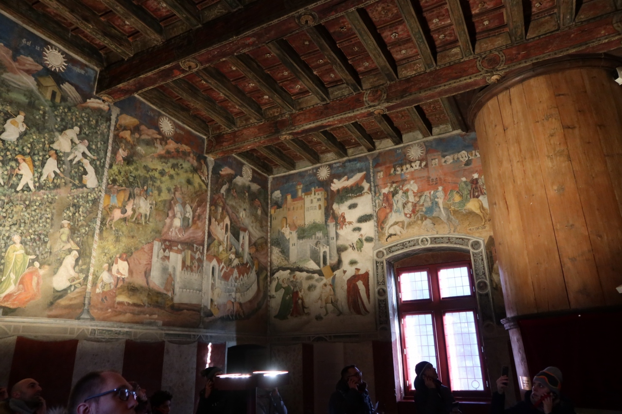 また館内ツアーでしか行けないアクイラタワー(アトリウム)の部屋はトレントの郷土史をフレスコ画に興していてこれがなかなか興味深かったです。