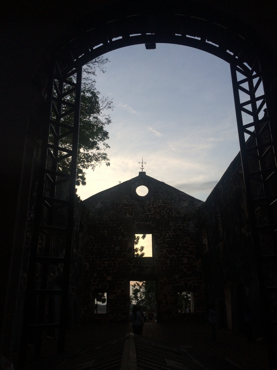 雨ざらし、灼熱の太陽の中、今も変わらず残っているのがすごいなという印象でした。かなり建物は古びていますが、いまでも土台はしっかりしていて高い壁もそのままです。ザビエルの遺骨安置されていたといわれています。金網に囲まれている部分がありました。
