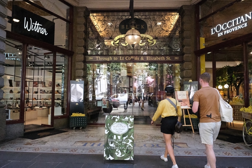 お茶とケーキで有名なホープタウン・ティー・ルームズもコリンズ・ストリート側から入ってすぐの場所にあります。