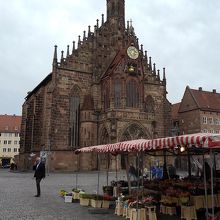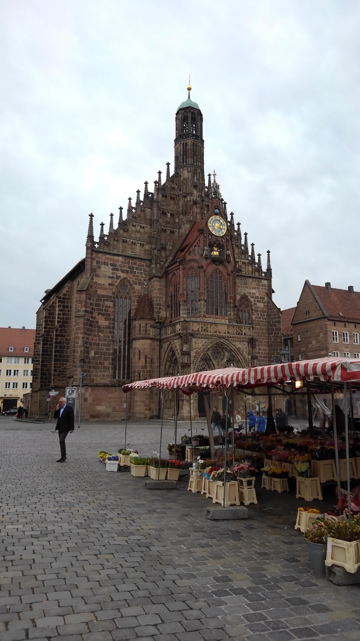 ニュールンベルクの旧市街で 中心と言える広い広場です。「フラウエン教会」や「美しの泉」があります。クリスマスマーケットで有名とのことですが、3月の訪問では想像するばかりです。広場の真ん中あたりに果物や野菜などの市場や 端には屋台が出ていました。
