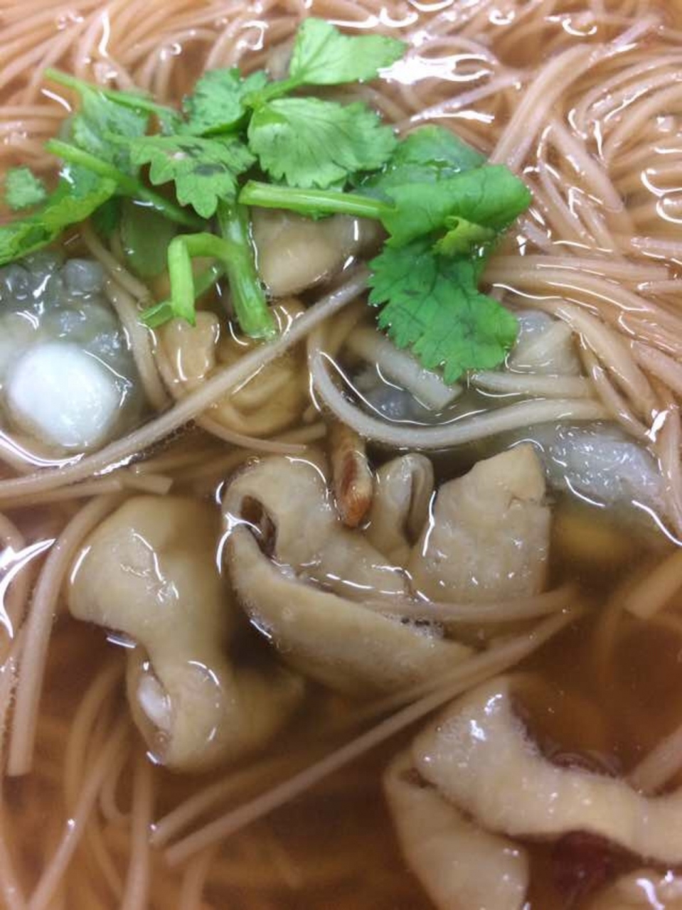 東發號は「伝統美食」といわれる、いわゆる昔から台湾人が食べ慣れているごはんを提供しています。饒河街觀光夜市のあるエリアで、屋台ではなく店舗のあるお店です。お店の隣にお寺があります。パクチーが麺の上にのっていて、味がきいていました。