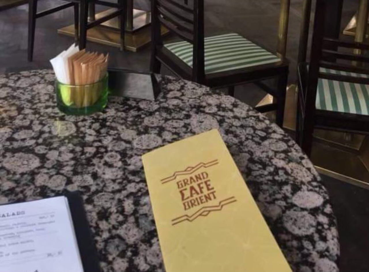 キュビズムの内装が美しいカフェです。