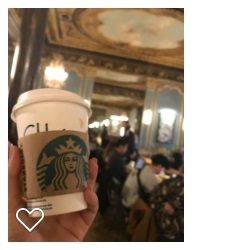 外見や注文するエリアは普通のスターバックスですが、奥へ進むと金の装飾で豪華な内装が広がります。皆さんコーヒを飲みながらゆっくりしているので、席を確保する事が難しく、この日はテイクアウトだけで写真撮影楽しみました。