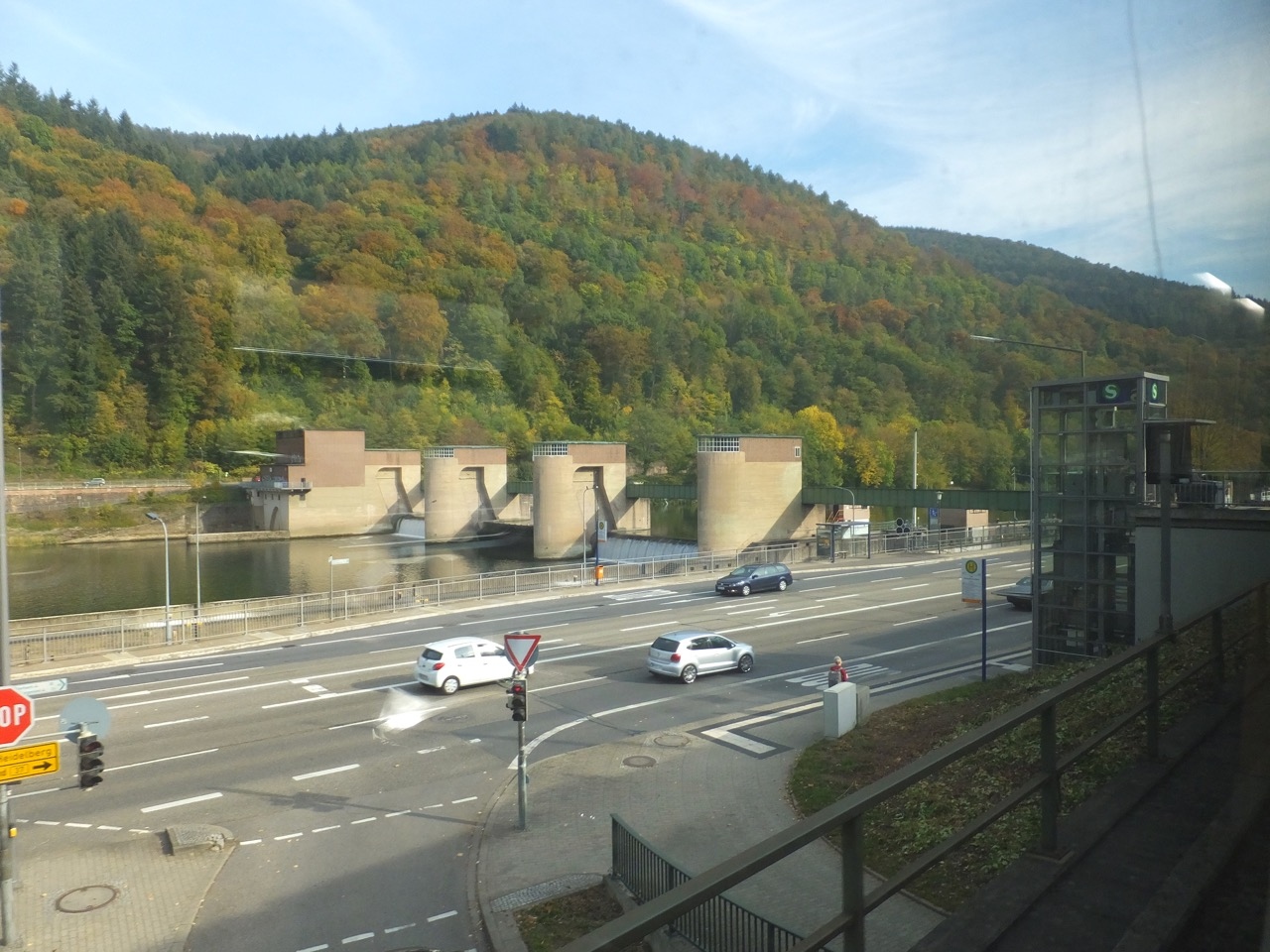 そしてライン川と違って、閘門があります。川の流れがやや急なので舟運のために川をせきとめて段差をクリアするために水門を開閉して水位上下させる設備です。運がよければ観光船が居るのもみることができます。