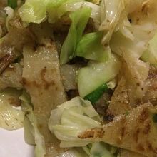 3品くらい頼んだ野菜メインの料理が、どれもおいしかったです。キャベツと薄いお好み焼きみたいのを一緒に炒めてあるのは、台湾で初めて食べました。べちょべちょしていなくて、大きな中華鍋で一気に炒めた感じが大変おいしかったです。