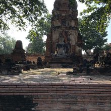 破壊された仏像の顔が長い年月をかけて木の根に覆われた遺跡はとても有名ですが、それ以外にも見どころがたくさんあります。石に囲まれた広場や斜めの塔などを背景に写真を撮ると、アユタヤの雰囲気を感じる写真が撮れます。歴史がわからなくても十分楽しめます。