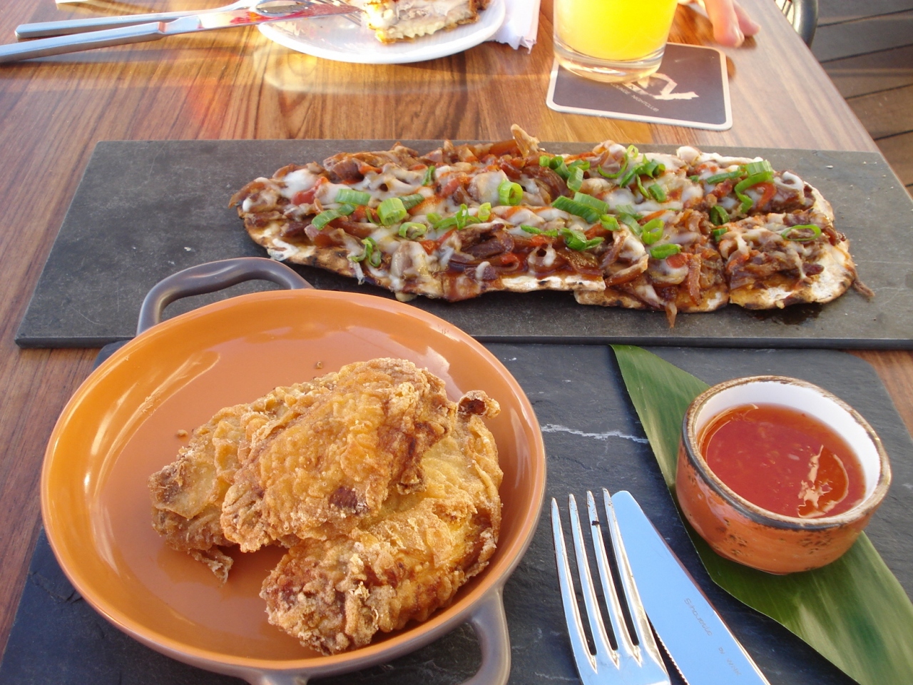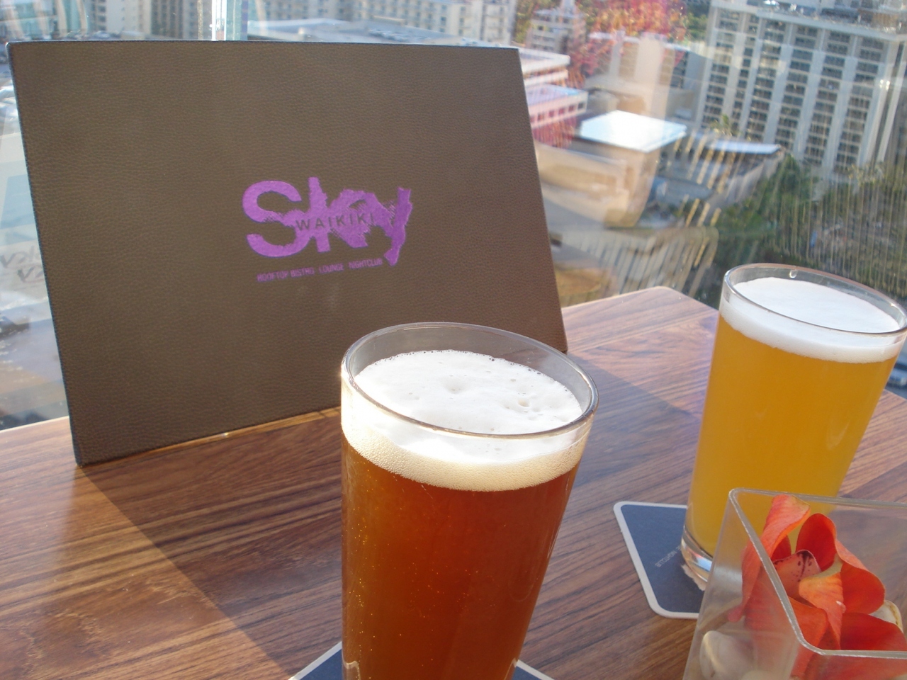 17時の開店時間に行ったので、海側の一番眺めの良い席に案内してもらえました。幸い天候も良く、シェラトンの後ろに沈む夕日を眺めながらのビールが美味しかったです。