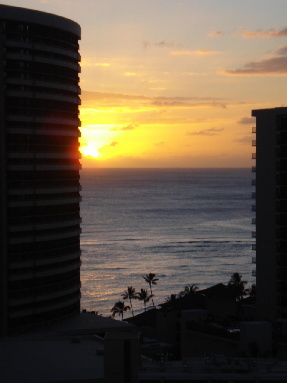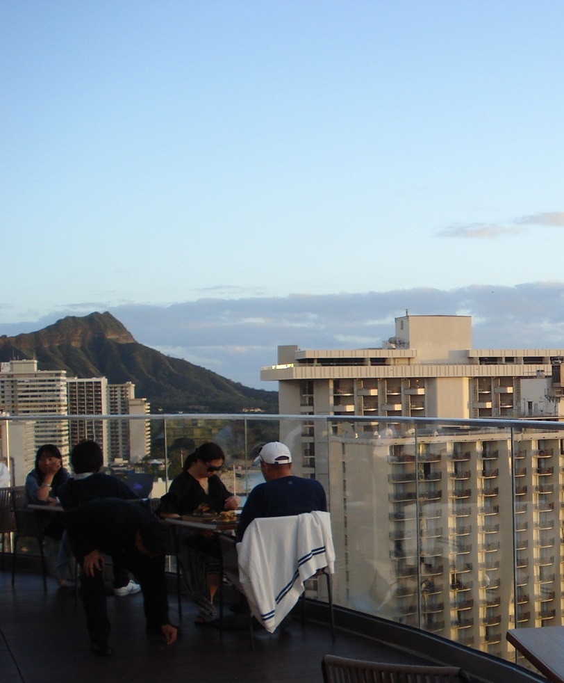 サンセットの眺めを期待して日本から予約して訪問しました。場所はワイキキビジネスプラザの19階で、20階にはトップオブワイキキがあります。